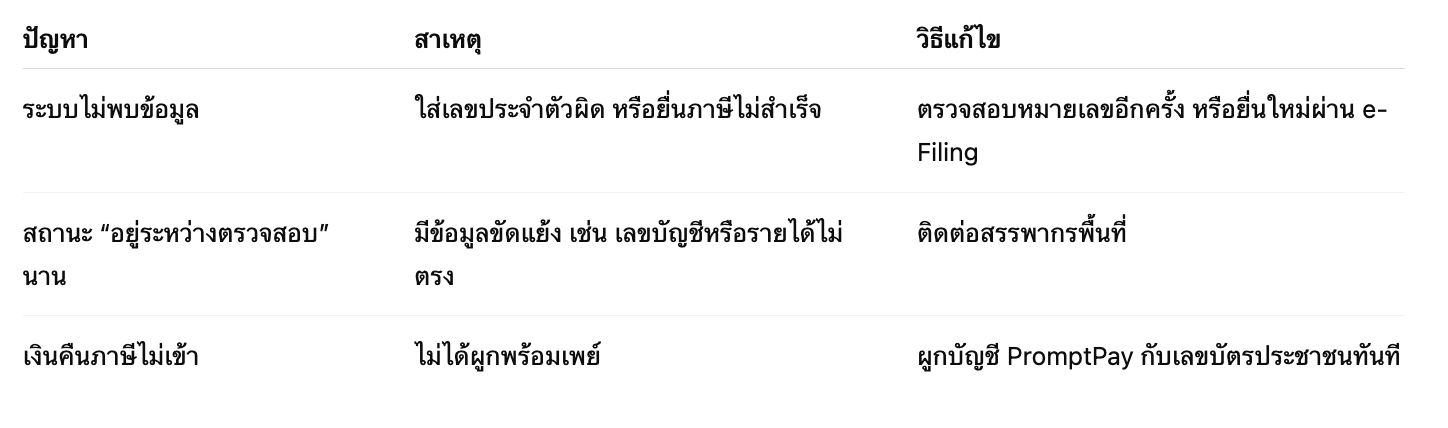 ⚠️ ปัญหาที่พบบ่อยในการตรวจสอบสถานะภาษี