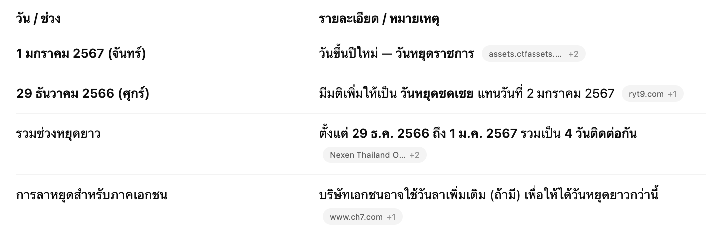 📆 วันหยุดปีใหม่ 2567 — สรุปสำคัญ