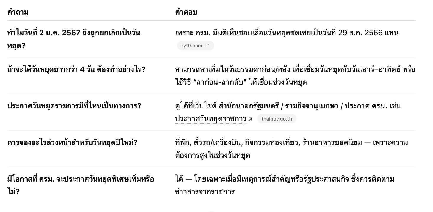 “วันหยุดชดเชย”, “วันหยุดราชการ”, “หยุดยาวปีใหม่” — เป็นคำรองที่เชื่อมโยงกับหัวข้อ