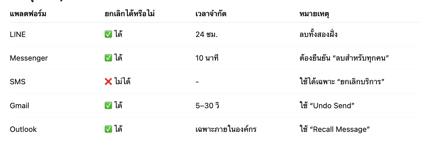 🛡️ ข้อควรจำในการยกเลิกข้อความ